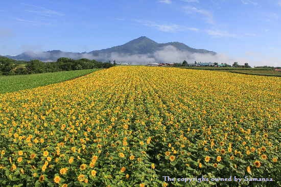 絵葉書のようなひまわり畑とアンヌプリのコラボ