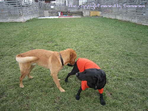 成ちゃんとシュウちゃんの匂いを嗅ぐワン達