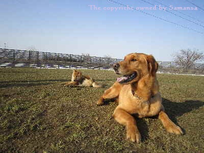 ジュピ太と龍くんは久々の草の上が気持ち良いやね