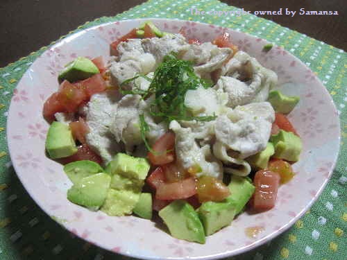 豚肉、大根、トマト、アボカド、大葉、亜麻仁油