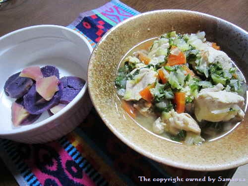 骨付きラム肉、玉子、ジャガイモ、人参、小松菜