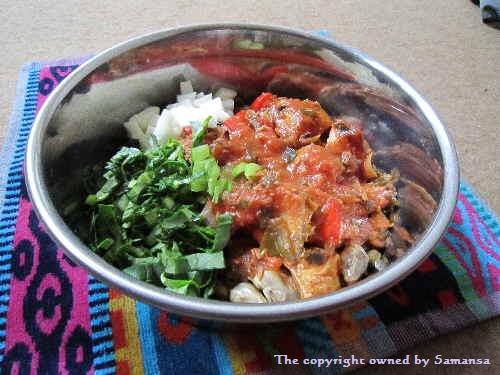 鯖、ピーマン、パプリカ、小松菜、長いも、水煮トマト