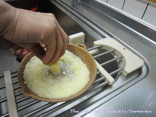 生馬肉、豚肉・野菜・ビーフンなどを煮た中に入れます