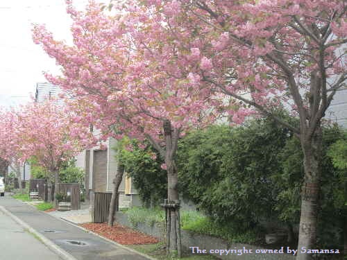 ここの街区は八重桜で、今が真っ盛りです